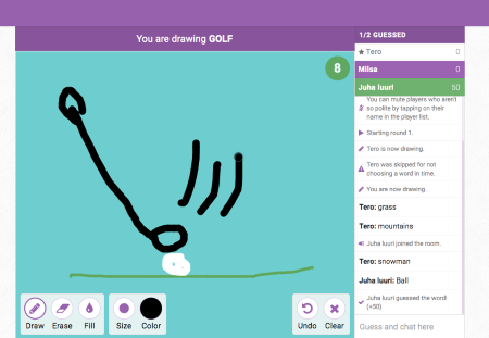 A mobile party game. Participants draw with their mobile devices. https://jackboxgames.com/drawful-two/